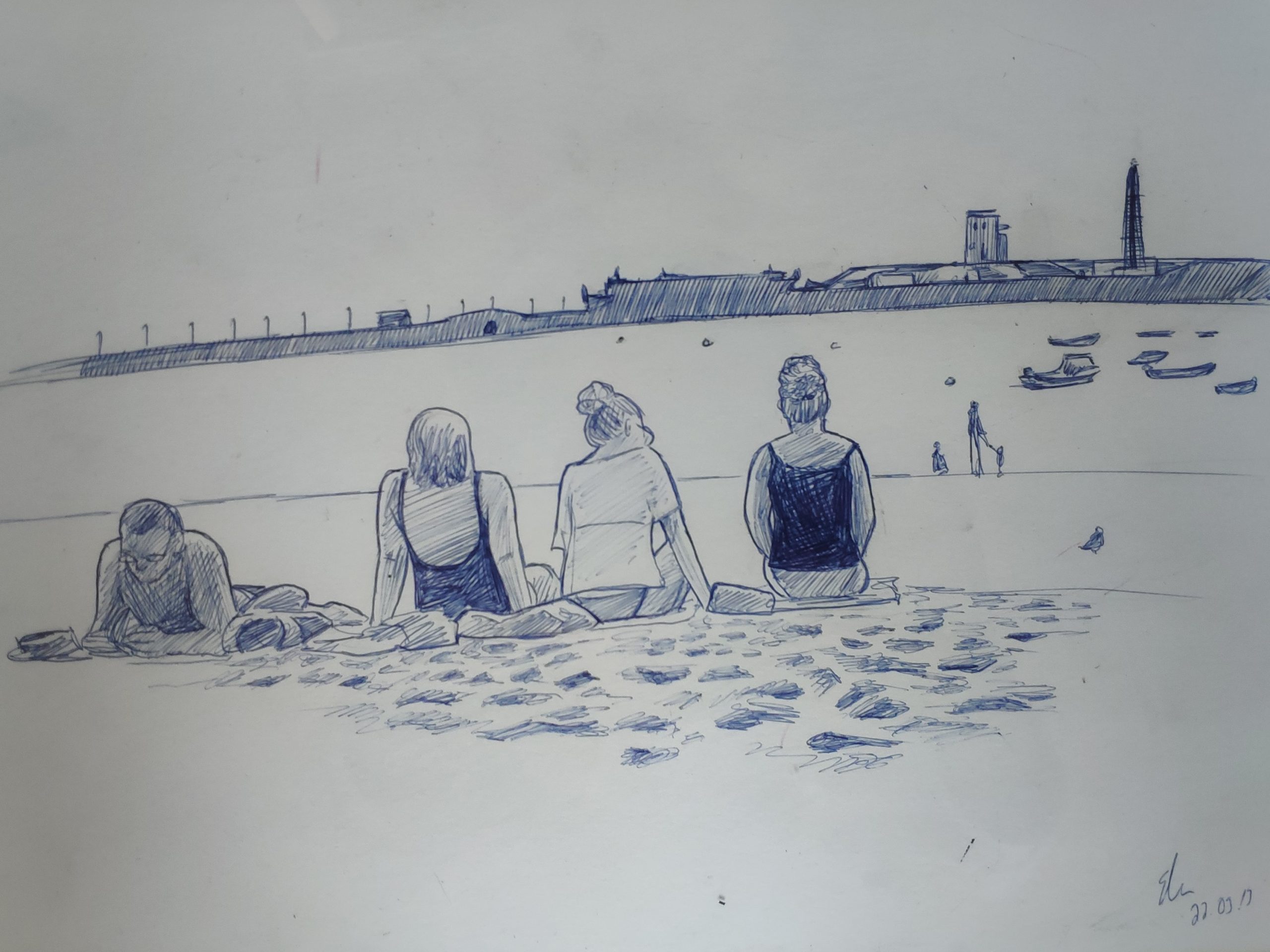 Eine Zeichnung, die ich schon vor über einem Jahr angefertigt habe, die aber jetzt erst einen Platz an der Wand gefunden hat. Zu sehen ist der Strand “La Caleta” in Cádiz, Spanien, wo ich ein Auslandssemester verbringen konnte. Sofort werde ich dorthin katapultiert, in den warmen Sand mit meiner Spanien-Playlist auf den Ohren. Zu einem anderen Ich mit anderen Gedanken und Gefühlen, die ich durch reines Betrachten wieder erlebe. Ich habe hunderte Fotos von diesem Strandabschnitt gemacht von traumhaften Sonnenuntergängen und Fischerbooten und trotzdem ist die Zeichnung mir am liebsten.